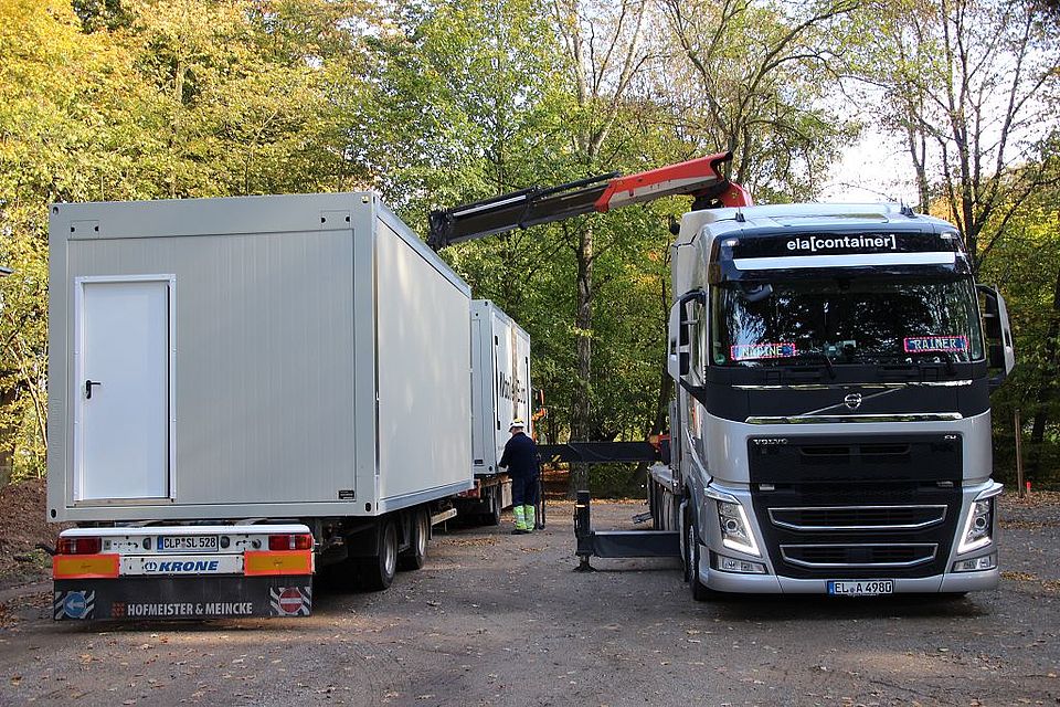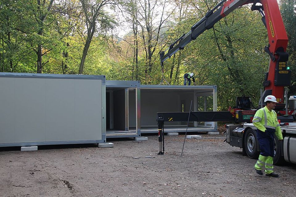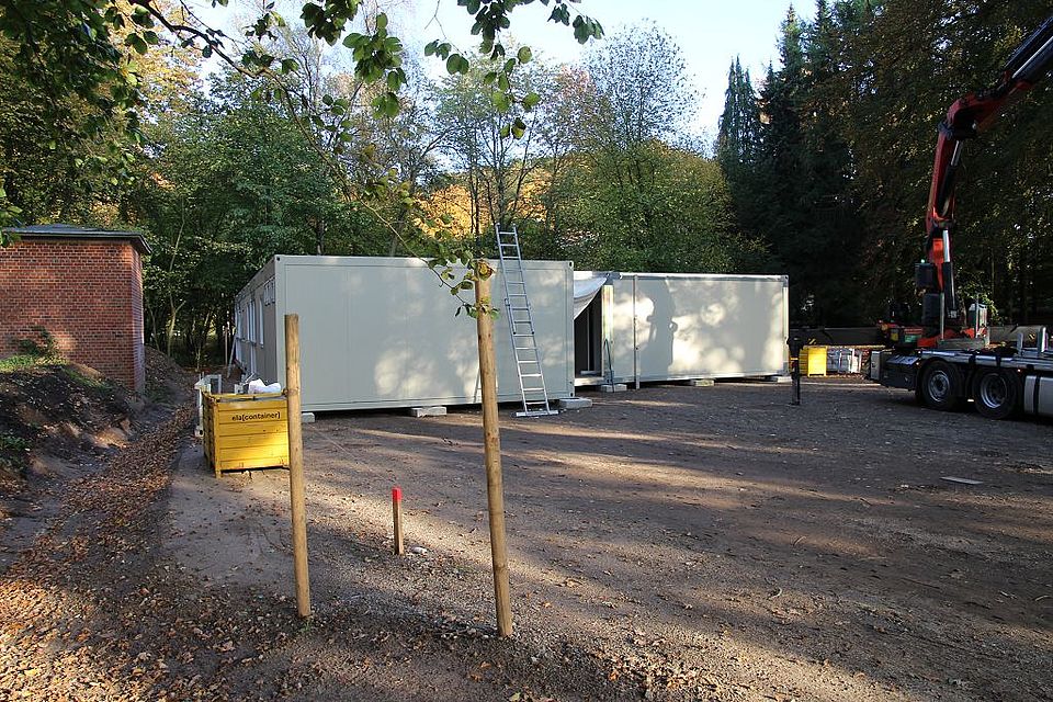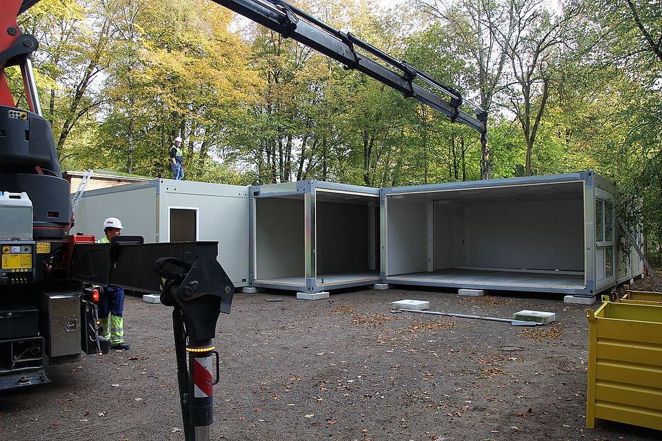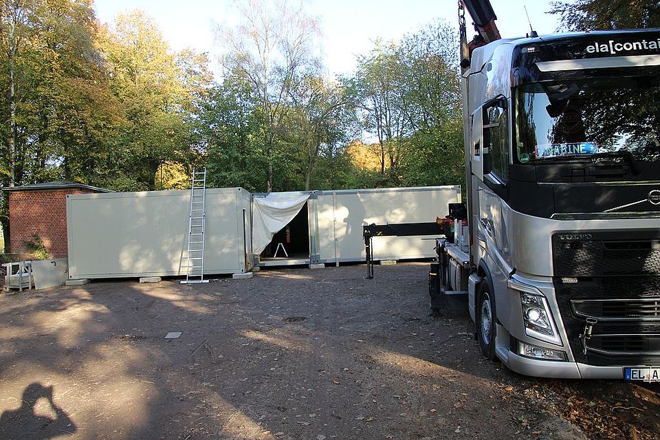 Läuft alles wie geplant, dann werden am Montag, 28. Oktober, die zwei Kindergartengruppen und die Krippengruppe in ihr neues Domizil in der DRK-Kindertagesstätte einziehen können. Unter den Augen von Katrin von Campe, Bereichsleiterin für Kinder, Jugend, Familie und Soziales beim DRK, KiTa-Leiterin Elke Augustin, Bad Bevensens Bürgermeister Martin Feller und Ordnungsamtsleiter Lothar Jessel werden die drei Lkw nach ihrer rund vierstündigen Fahrt von ihrer Ladung befreit und können den Heimweg antreten. Nach und nach werden die weiteren Container eintrudeln und auf dem 400 Quadratmeter großen Gelände aufgebaut und an die Wasser- und Stromversorgung angeschlossen.