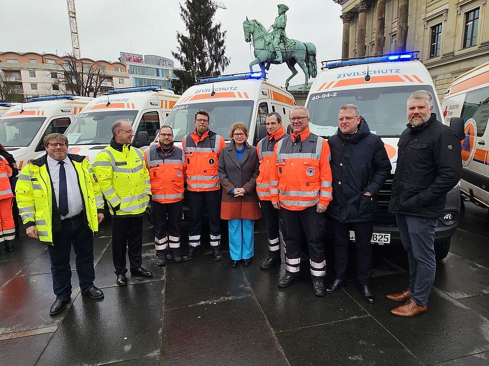 Dieses Engagement begrüßt auch der DRK-Vorstandsvorsitzende, Tim Meierhoff, der sich zur Übergabe gemeinsam mit den Ehrenamtlichen der DRK-Bereitschaft Kreis Uelzen auf den Weg nach Braunschweig gemacht hat, um die Fahrzeuge offiziell von Innenministerin Daniela Behrens in Empfang zu nehmen. „Die geländefähigen Fahrzeuge stärken nicht nur Zivilschutz, sondern auch den Katastrophenschutz vor Ort“, sagt Tim Meierhoff. Mit der Übergabe der Fahrzeuge werde dieser im Landkreis Uelzen weiter gestärkt. Die neuen Fahrzeuge sind allesamt auch fürs Gelände geeignet und so eine wichtige Ergänzung für die Hilfeleistungen bei schlechten Straßenverhältnissen oder beschädigter Straßeninfrastruktur. "Eine wichtige Investition, um die Einsatzfähigkeit der Medical Task Force 3 zu optimieren und die Sicherheit in Notlagen zu gewährleisten", sagt Kreisbereitschaftsleiter Andreas Schulze.