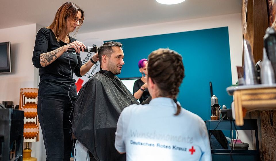 „Für mich ist es toll, zum Friseur zu gehen und damit gleichzeitig etwas Gutes zu tun“, erzählt Fabian Wolter, während Kathy ihm die Haare schneidet. Doch was ist Wunschmomente? Wunschmomente ermöglicht Menschen, die an einer unheilbaren Krankheit leiden und keine lange Lebenserwartung haben, einen letzten Wunsch - Noch einmal das Elternhaus sehen, eine Fahrt durch den Heimatort, ein Eis im Eiscafé essen, einen Tag und einen Sonnenuntergang am Meer erleben, ein Besuch im Kino, Theater oder ein Ausflug in die Heide, einmal noch Kaffee und Kuchen im Lieblingscafé genießen oder durch das Herbstlaub laufen.