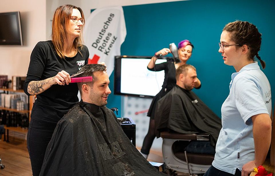 Mit einer Spende unterstützt das Frisör-Team des Salons Frante's 53 aus Uelzen die DRK-Initiative Wunschmomente. Beim ersten Walk in Day flossen alle Gelder, die für Haarschnitte eingenommen wurden, in einen Spendentopf. Auf diese Weise kam 1700 Euro zusammen die an Wunschmomente überreicht werden konnten.
