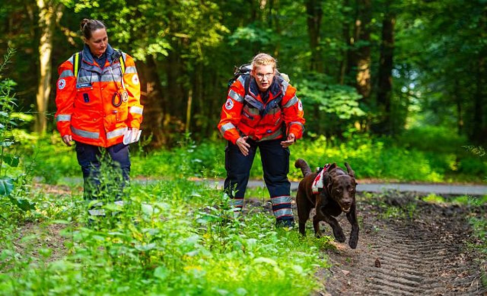 Ebstorf. Zu einer großangelegten Personensuche ist die DRK-Bereitschaft Kreis Uelzen Montag, 10. Juni, gegen 7.40 Uhr gerufen worden. Seit dem Vortag wurde ein 78-Senior aus einem Ebstorfer Pflegeheim vermisst. Nachdem Angehörige und Polizei hatten bereits vergeblich nach ihm gesucht hatten, wurde die Suche ausgeweitet. Die DRK-Rettungshundestaffel sowie die Drohne der DRK-Bereitschaft wurden alarmiert. Da sich das Pflegeheim in einem Waldstück befindet, wurde die Drohne mit Wärmebildkamera eingesetzt, um die angrenzenden Felder und Wege aus der Luft abzusuchen. Am Boden machten sich derweil die Hundeführer mit ihren Vierbeinern auf die Suche. Unter ihnen auch Hundeführerin Anna Richter mit ihrem Hund Hugo. Das eingespielte Team suchte die im Vorfeld besprochenen Flächen systematisch ab. Weitere Teams, unter anderem vom der DRK-Bereitschaft Lüneburg, waren an der Suche beteiligt.