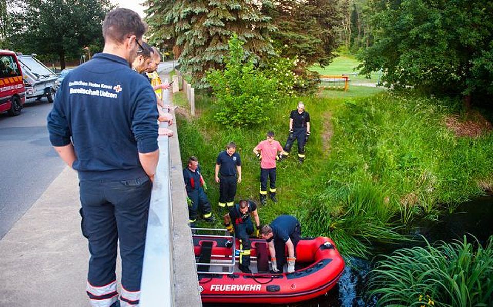 Mit einer Menschenkette suchten die Helfer großflächig Waldstücke, Felder und markante Grundstücke ab. Zudem wurde mit einem Schlauchboot der Feuerwehr Uelzen teilweise die Schwienau abgefahren und -gesucht. Ebenfalls im Einsatz die Drohne des DRK. Sie erkundete verschiedene Gebiete aus der Luft. Die sehr umfangreichen Suchmaßnahmen blieben jedoch ohne Erfolg. Gegen 22 Uhr musste aufgrund der anbrechenden Dunkelheit die Suche eingestellt werden.