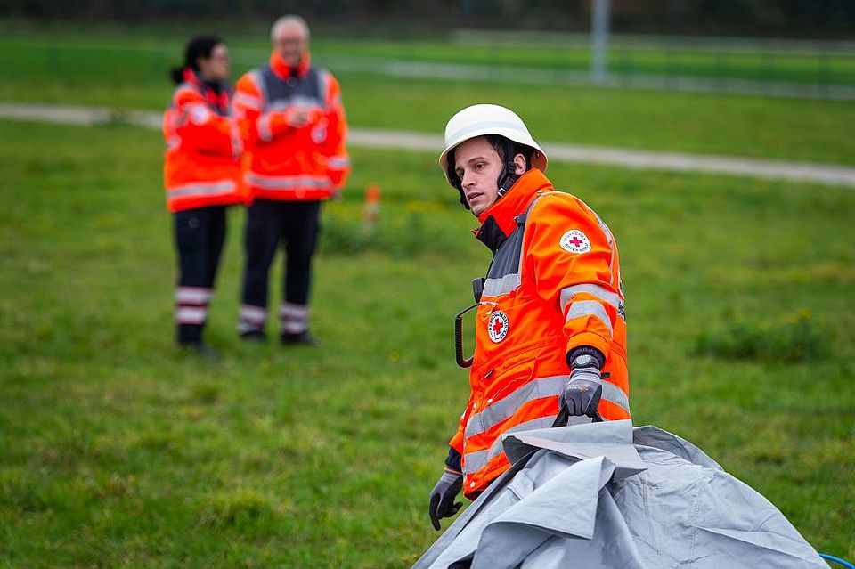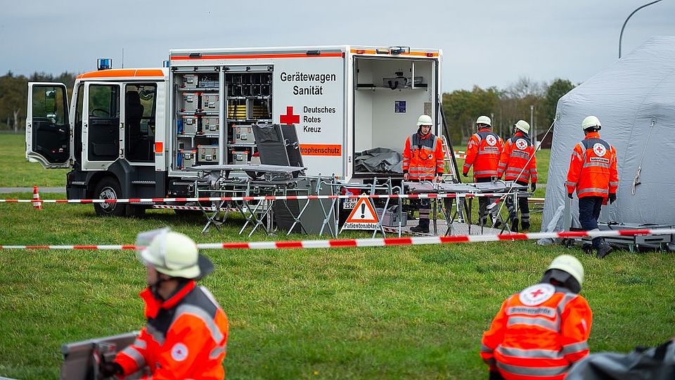 Für die Teileinheiten „Behandlungsbereitschaft“ und „Logistik“ ging es zum gleichen Zeitpunkt zum Messegelände Tarmstedt. Dort gab es für den Verbandführer der Behandlungsbereitschaft, gestellt vom ASB Lüneburg, den Auftrag: „Erkunden des Geländes sowie Aufbau eines Behandlungsplatzes“. Als fiktives Einsatzszenario wurde eine Explosion in einer Schule angenommen, bei der es zu ca. 300 Verletzten Personen kam. Nach einer Lagebesprechung mit den Führungskräften konnte der Behandlungsplatz ohne größere Probleme mit den vorhandenen Mitteln aufgebaut werden.