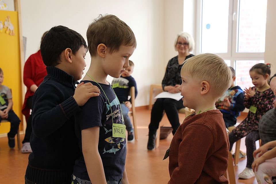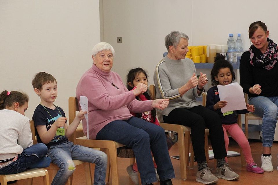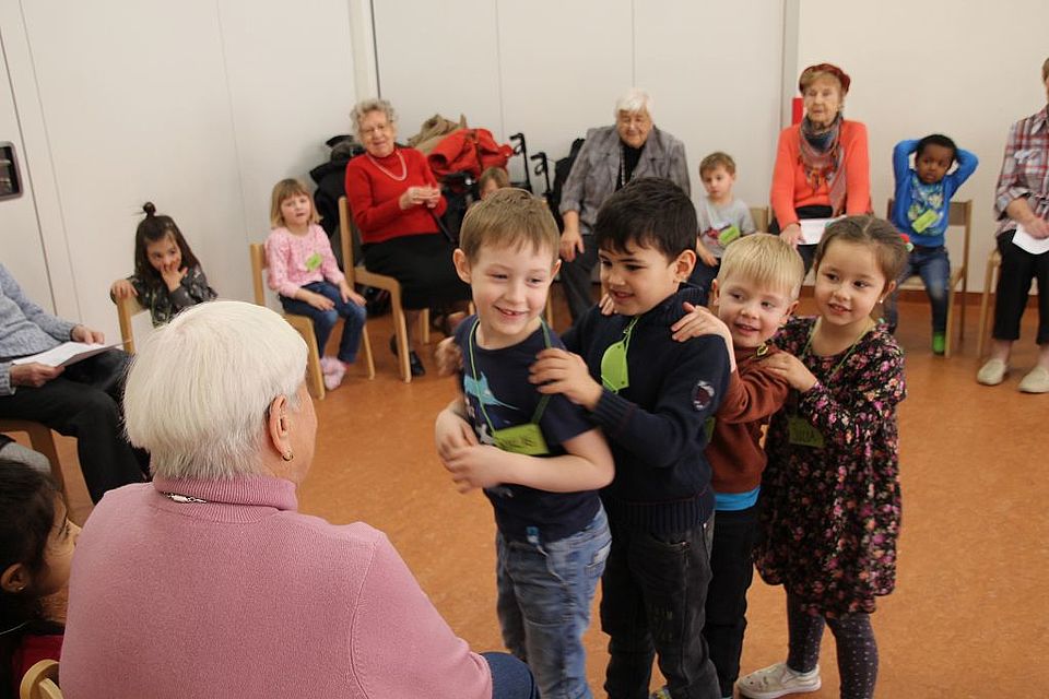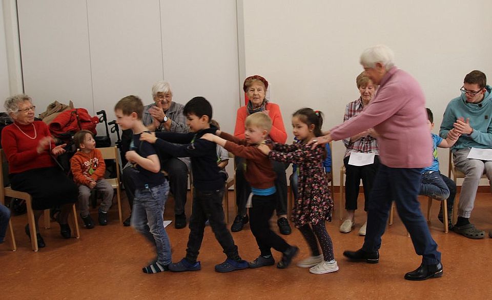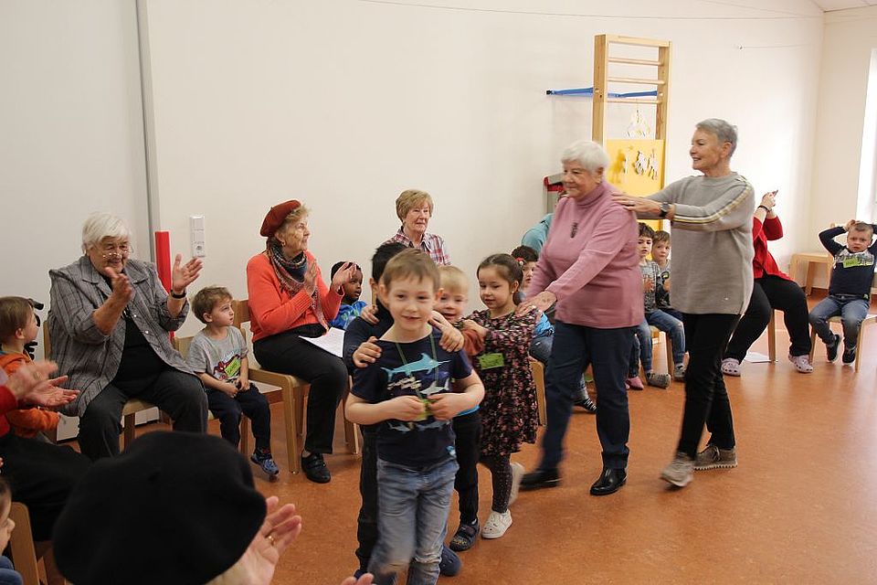 Uelzen. Seit Anfang des Jahres treffen sich Jung und Alt regelmäßig. „Die Kinder waren schon einige Male bei uns im Hause“, sagt Kerstin Seibel, Betreuungsassistentin in der Seniorenresidenz. Heute sei man das erste Mal zu Gast bei den Kindern. Und die freuen sich und nehmen ihre Besucher mit offenen Armen in Empfang. Das Eis zwischen den Generationen ist schnell gebrochen. Es wird gesungen, miteinander erzählt und gemeinsam Bewegungsspiele zum Gesang gemacht. Alle haben sichtlich Spaß in dieser großen Runde. Gerne lassen sich die Damen von den Kindern anstiften gemeinsam in der „Bimmelbahn“ zu fahren, die diesmal etwas langsamer fährt, da ja betagte Gäste mitfahren. Für die Kinder kein Problem entsprechend Rücksicht zu nehmen, die Senioren sind halt nicht mehr ganz so schnell und beweglich wie sie. Nach Gesang und Bewegung gibt’s für alle Getränke und Kekse und die Gewissheit, dass man sich bald wiedersehen wird.