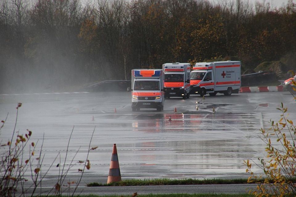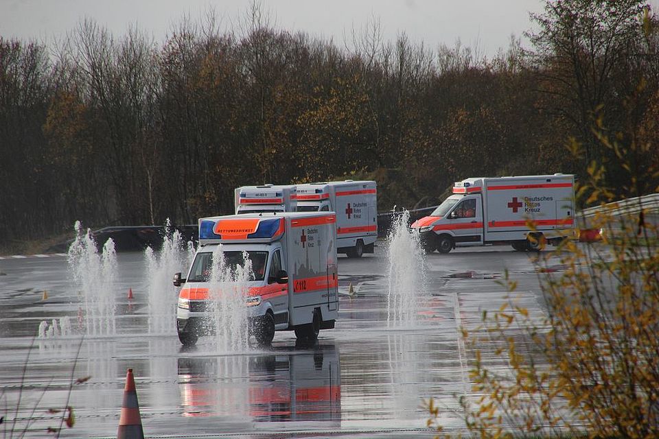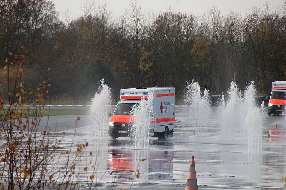 ein Gewicht von 1,5 Tonnen ist es wichtig mit dem RTW extreme Fahrsituationen in einem geschützten Umfeld zu trainieren.