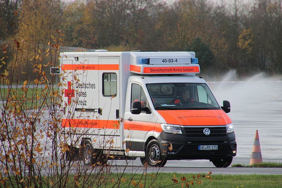 Uelzen/Embsen. Slalom fahren, Aquaplaning, plötzlich auftretenden Hindernissen ausweichen, Stresstest: Dies sind nur einige der Aufgaben, denen sich Mitglieder der DRK-Bereitschaft Kreis Uelzen kürzlich gestellt haben. Mit fünf Rettungswagen (RTW) nahmen sie an einem an einem speziell für Rettungsdienste entwickeltem Fahrsicherheitstraining auf dem Gelände des ADAC Fahrsicherheitszentrums Lüneburg teil.