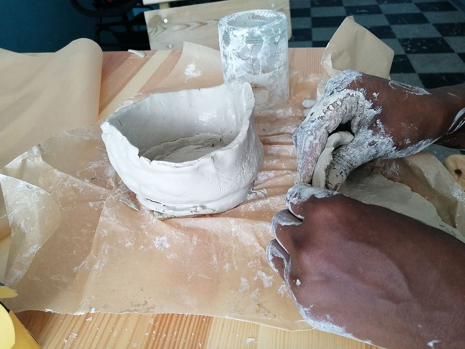 Das Töpfern mit Trockenton wurde von allen begeistert angenommen. Kleine Aschenbechern und Schalen, kleinen Kunstwerken, die ganze Geschichten erzählen, entstanden.