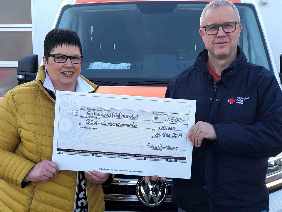 Eine Spende in Höhe von 1500 Euro für die DRK-Initiative „Wunschmomente“ überreichte Sabine Bartkowski, Senioren- und Dementenbegleitung in Uelzen, an den Kreisbereitschaftsleiter des DRK-Kreisverbands Uelzen, Andreas Schulze.