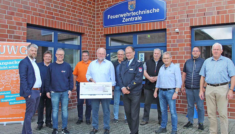 Eine Spende in Höhe von 1000 Euro haben die Unabhängigen Wählergemeinschaften Landkreis Uelzen (UWG) an die Hochwasserhilfe der Hansestadt Uelzen, Kreisfeuerwehrverband Uelzen und DRK-Kreisverband Uelzen e.V. überreicht. Gemäß ihrem Motto Anpacken – nicht schnacken haben die Wählergemeinschaften, im Hinblick auf die Kommunalwahlen, auf eine Plakatwerbung in Stadt und Landkreis Uelzen verzichtet. „Das so gesparte Geld haben wir aufgestockt, somit können 1000 Euro zur Hochwasserhilfe beisteuern“, sagt der Sprecher Klaus-Georg „Pilo“ Franke. Somit ist das gemeinsame Spendenkonto auf rund 57000 Euro angewachsen. Das Geld wird, in Absprache mit der Gemeinde Ahrbrück, für ein gemeinsames Projekt im Rahmen des Wiederaufbaus der kleinen Gemeinde verwendet werden. Der 1200 Einwohner zählende Ort ist schwer von der Flutkatastrophe getroffen.
