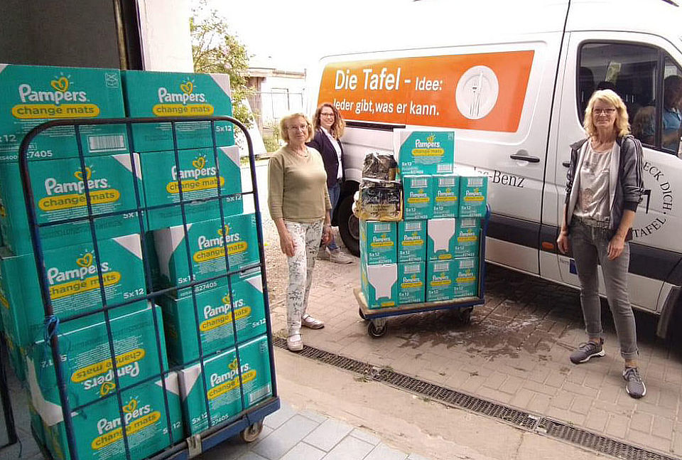 Kürzlich machte sich DRK-Mitarbeiterin Dörte Heinz auf den Weg um die gespendeten Waren zu verteilen. Pampers, Wickelauflagen und Damenhygieneartikel wurden bei der Uelzer Tafel ausgepackt. Barbara Frels und Monika Senkel nahmen die Lieferung gerne entgegen. Besonders groß war dort die Freude über den gespendeten Kaffee. „„Kaffee bekommen wir nicht so oft, den werden wir gerne weitergeben“, sagte Gerard Minaard, Leiter der Tafel. Wöchentlich kommen rund 200 Familien/Personen zur Ausgabe, daher könne man die Ware gut gebrauchen.