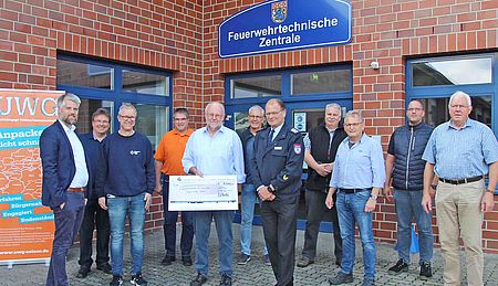 Uelzen. Zur Feier der 100 000. Impfung sammelte das Team des Impfzentrums, bestehend aus dem ärztlichen Dienst (Ärzten), den Impfern, Betreuungs-, Verwaltungs- und Sanitätsmitarbeitern für die Hochwasserhilfe der Hansestadt Uelzen, des Kreisfeuerwehrverband Uelzen und dem DRK-Kreisverband Uelzen. Insgesamt sammelte das Team 1100 Euro, die jetzt übergeben worden sind.