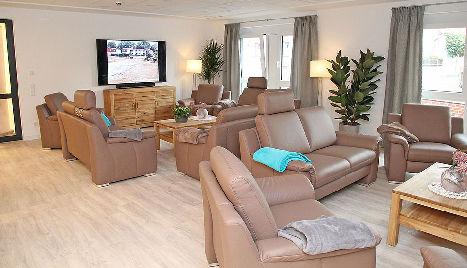 Die Tagespflege ist modern und hell gestaltet. Ein großer Gemeinschaftsraum lädt zu sozialen und gemeinschaftlichen Aktivitäten ein. Die große Küche kann gemeinschaftlich genutzt werden. In die vorhandenen Ruheräume können sich die Gäste zurückziehen, im Kreativraum werden unterschiedliche Beschäftigungen, wie zum Beispiel malen oder basteln, angeboten. Auf dem nach Süden ausgerichteten Außenbereich können die Gäste das schöne Wetter genießen und frische Luft tanken.
