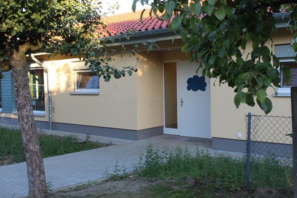 Die freundlich und hell eingerichteten Gruppenräume sind mit verschiedenen Spielebenen ausgestattet, die kindgerechte Funktionsecken beinhalten. Die gesamte Kindertagesstätte ist umgeben von einem großzügigen Außengelände, das viele Erlebnismöglichkeiten für die Kinder bietet: Beispielsweise eine Rutsche, Ballbecken, Wippe, Schaukel, Sandkiste, Wippentiere und eine großzügige Rasenfläche.